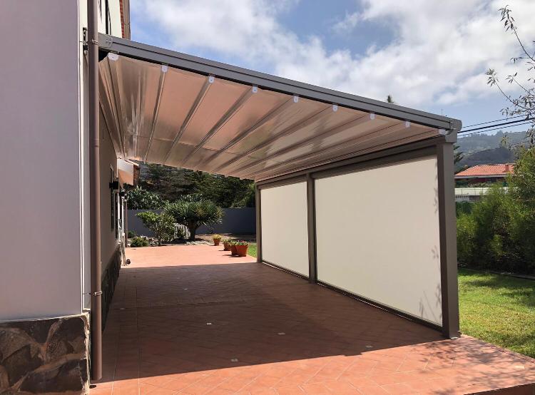 Disfrute de sus espacios al aire libre, con este producto lograra obtener dos ambientes en un mismo espacio en apenas unos segundos; Las conocemos como toldos horizontales plegables o pérgola, son estructuras diseñadas y fabricadas en aluminio anodizado o pintado con sistemas plegables corredizos tipo acordeón automatizados o manuales, confeccionadas con telas acrílicas y de pvc de larga duración, después de estar desplegadas y tensadas generan total protección solar y de lluvia diferenciándose entre ellas por su capacidad de resistencia al granizo, viento, etc. esta última cuenta con sistema incorporado de iluminación led dándole mayor elegancia y distinción a estos espacios, también pueden ser fijas, curvas, a dos o una caídas de agua lo que hace que se ajusten a cualquier espacio y necesidad.